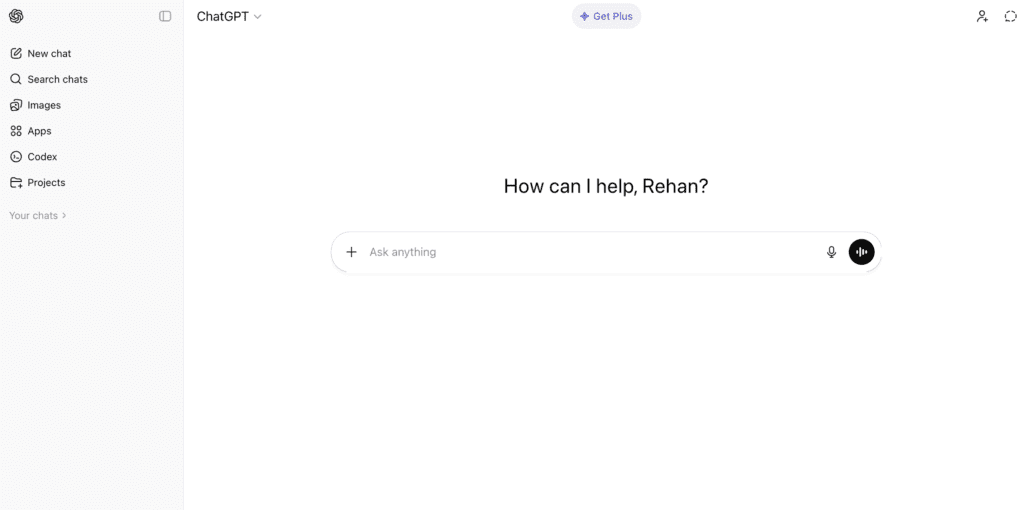 Setup: Open ChatGPT and select a free plan.
